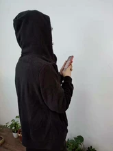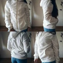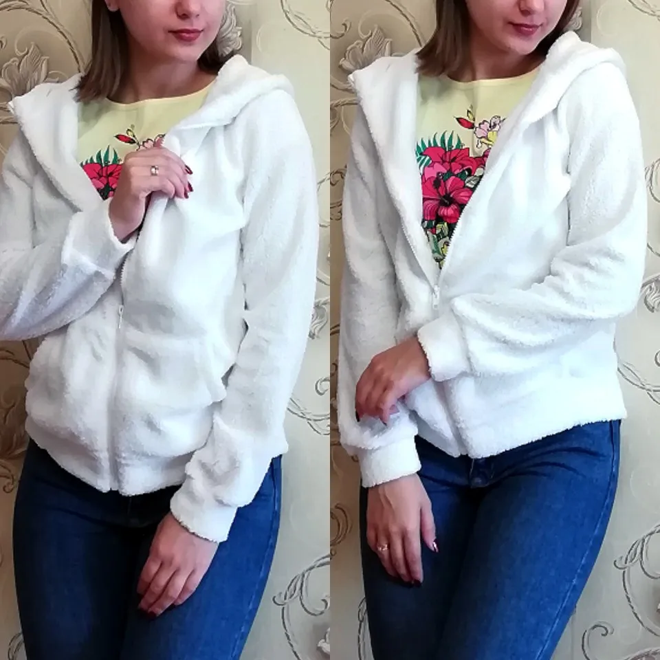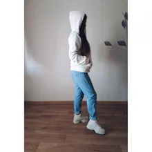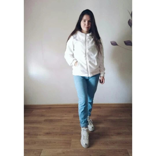 On its parameters: og 85 cm, waist 64 cm, weight 53 kg and height 162 cm, i chose the size m, i like such things to sit freely and do not hamper the movement. The length of the sweatshirt is excellent, not short, closes the lower back, the material is very light in weight, not too thick, the skin feels nice. In front there are two small pockets, on the sleeves there are cuffs that gently fit to the wrists, the zipper walks well, the hood of medium size. The delivery was very fast, the sweatshirt had no smell and was well packed, wash it better on hands or use the "hand wash" mode.